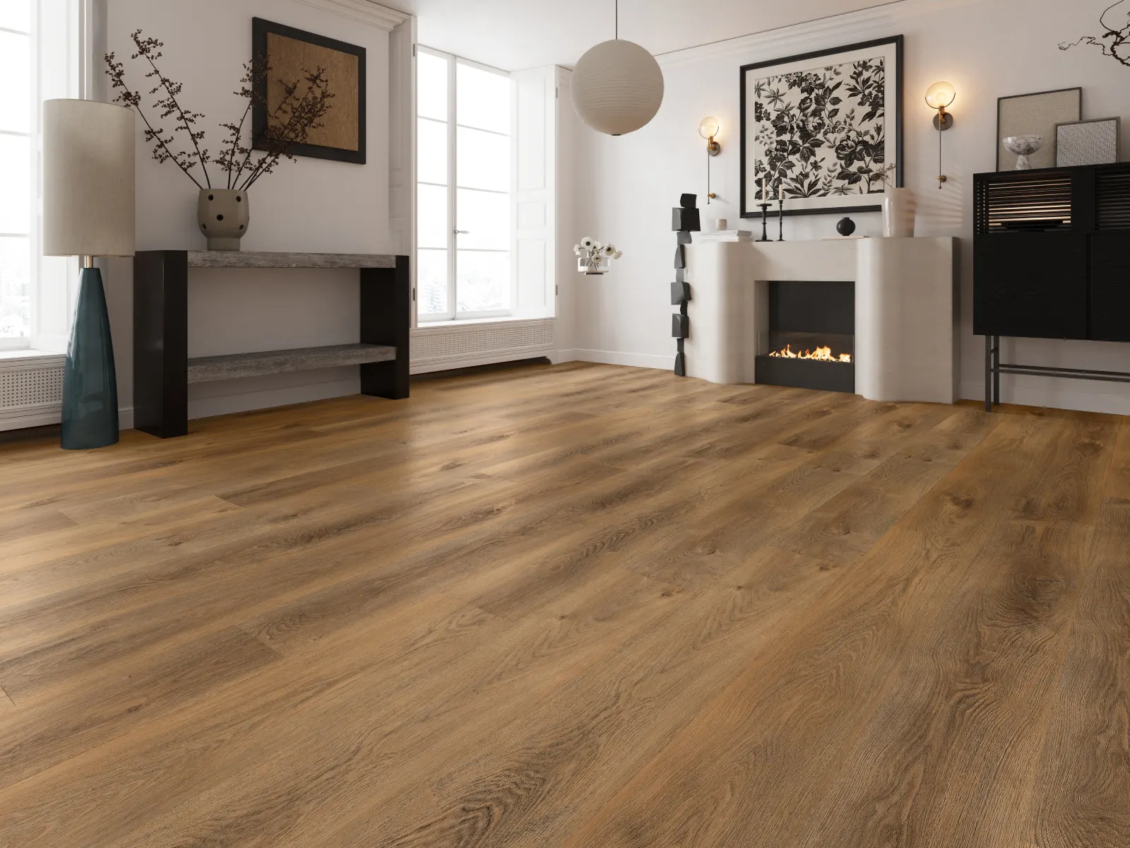 Rustic Chestnut Oak delivers uncompromised vintage appeal. Showcasing warm amber hues, highly detailed grain patterns, and authentic knotting, this floor brings the rich, time-worn character of heritage hardwood into your home with the modern benefits of luxury vinyl.